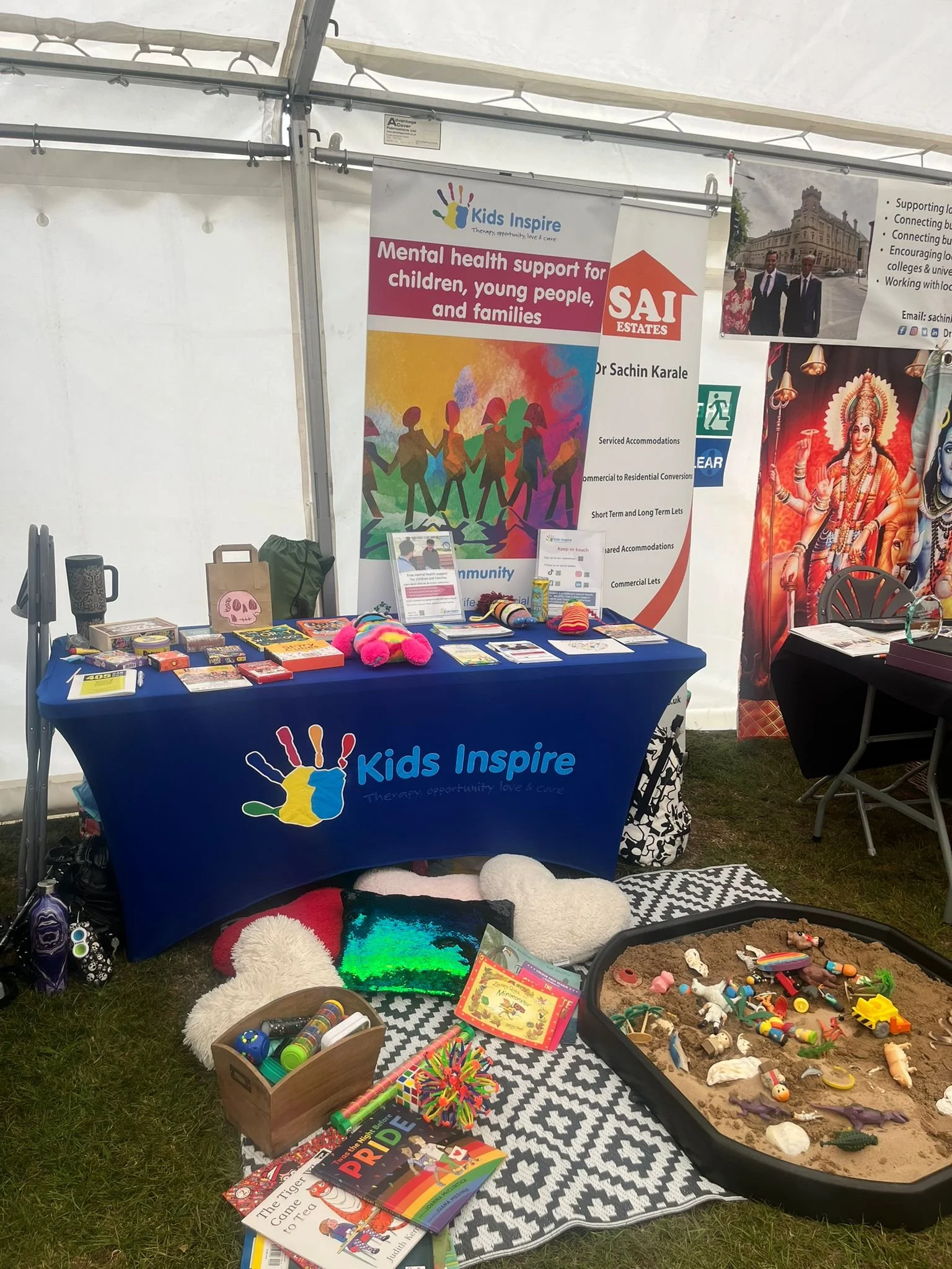 At the end of the Summer Holidays, we attended the fantastic community festival in Ipswich that has been running for over 13 years and this year attracted over 8,000 visitors! We had a stall in the marquee alongside other community groups, organisations and traders and created the perfect place to stop and chat with our sandpit, fidget toys and books, so children could play whilst parents found out more about our therapy offer. By offering a play space within the hustle and bustle of an amazingly busy day, we were able to have over 200 meaningful interactions with many more taking our information away with them.